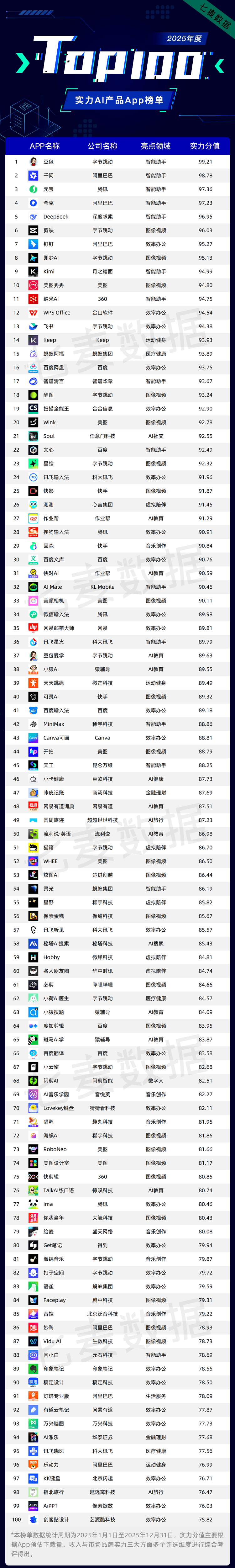 此中字节跳动旗下「豆包」占领Top1。供给通用Agent入口,自觉布以来,百度健康发布百度健康AI管家,据第三方演讲显示!