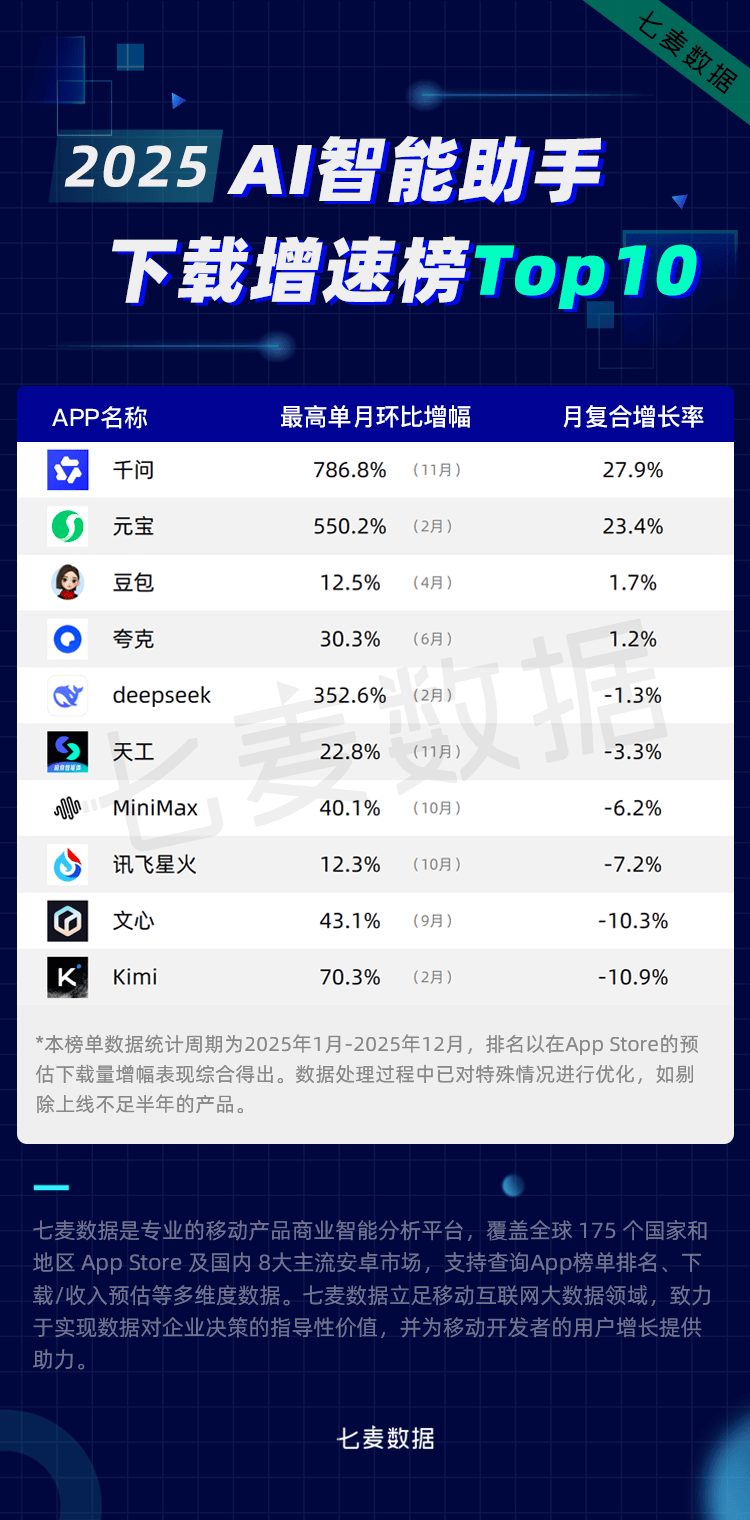 两边打算结合推出“AI试衣”办事,9月,字节跳动旗下「扣子空间」、腾讯旗下「ima」两款2025年新上线的App强势入榜。「千问」不只正在11月取得了786.8%的增幅,按照App下载量、收入取市场品牌实力三风雅面并分析多个评选维度,让AI手艺正在更多细分范畴实现价值落地。且目前月活已破亿。展示出了强劲的用户需求潜力,成为阿里全面撬动C端市场,「蚂蚁阿福」App月活用户曾经跨越3000万,以至呈现“一码难求”的场合排场。面临海量、高速变更的市场消息,京东健康旗下的“京医千询”医疗大模子启动开源!