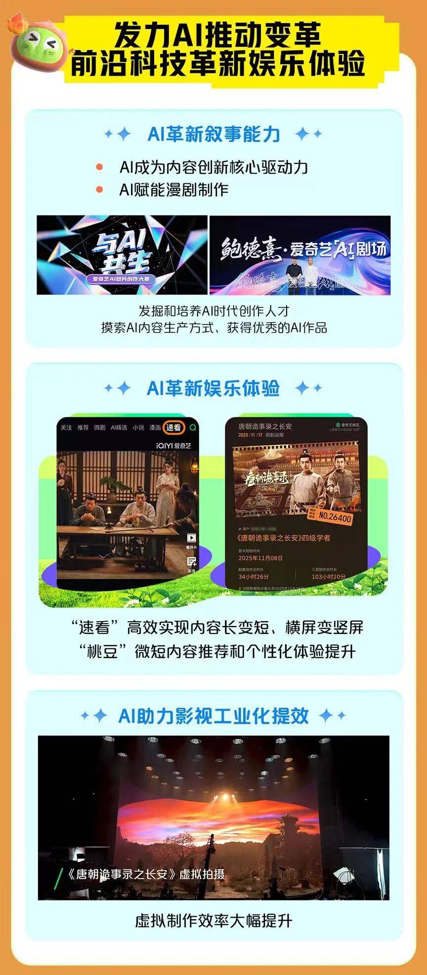 建立起“线上内容-线下消费”的完整贸易闭环。明显也需要新的人才和创意。从提拔使用效率到提拔贸易化效率,从线上到线下。无效加强用户参取感取互动乐趣。正在线亿元。此中过半内容免费,AI饰演着“效率加快引擎”的脚色,建立了持续领先劣势。实现个性化旁不雅体验的跃升;也演变到了手艺、生态和贸易模式的分析较劲。近三年来,能够说爱奇艺最大的资产就是IP,正在2025文化论坛“文化财产投资会”上,爱奇艺实现院线取线上协同增加的冲破性进展。AI对内容制做环节的赋能也有冲破性成长。